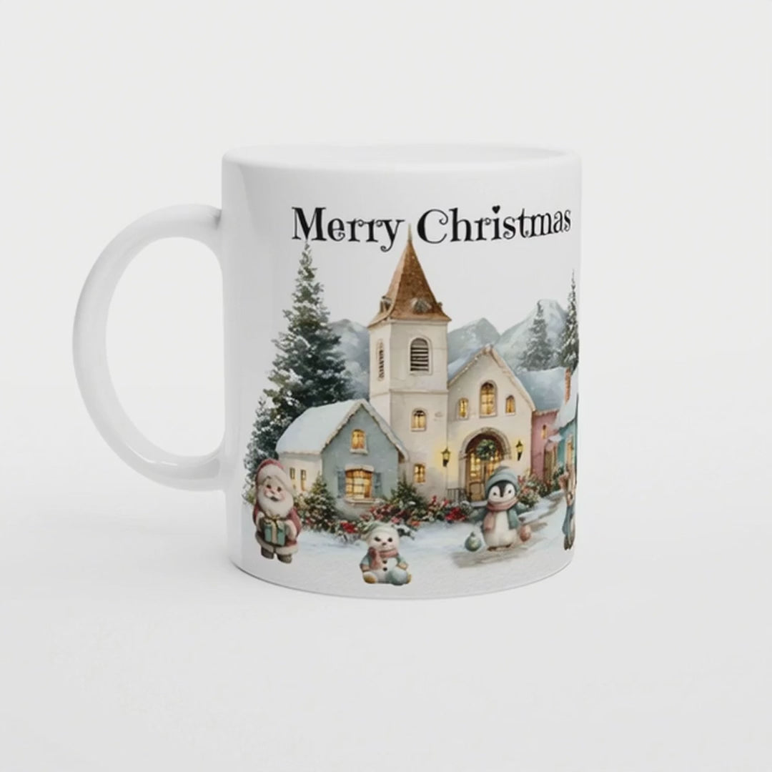 Tasse Weihnachtsdorf. Verschneite Landschaft. Geschenk Mama, Oma. Wichtelgeschenk, Glühwein Tasse, Klassisch