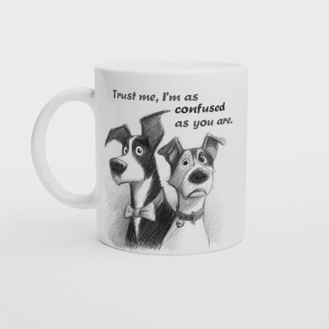 Trust me, I’m as confused as you are | Lustige Hunde Tasse mit Spruch | Geschenkidee für Kollegen oder Chef | Witziges Weihnachtsgeschenk