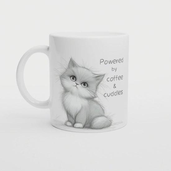 Geschenk Beste Freundin | Katze Powered By Coffee Cuddles | Niedliche Tiere Keramiktasse Weihnachten, Thanksgiving