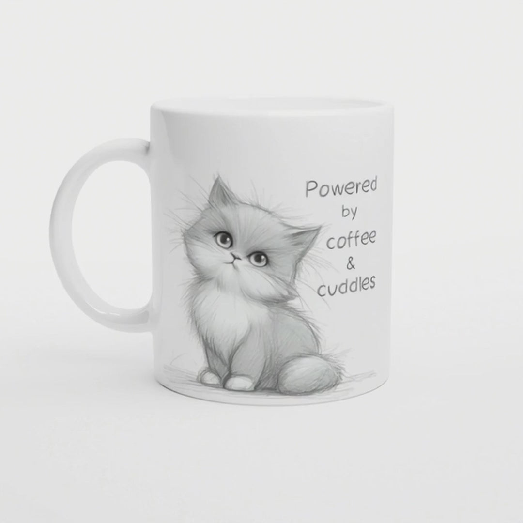 Manchmal braucht man einfach nur: Coffee & Cuddles. Diese liebevoll gezeichnete Katze bringt Wärme in kalte Wintertage und zeigt, was wirklich zählt – Kaffee, Kuscheln und Gemütlichkeit.