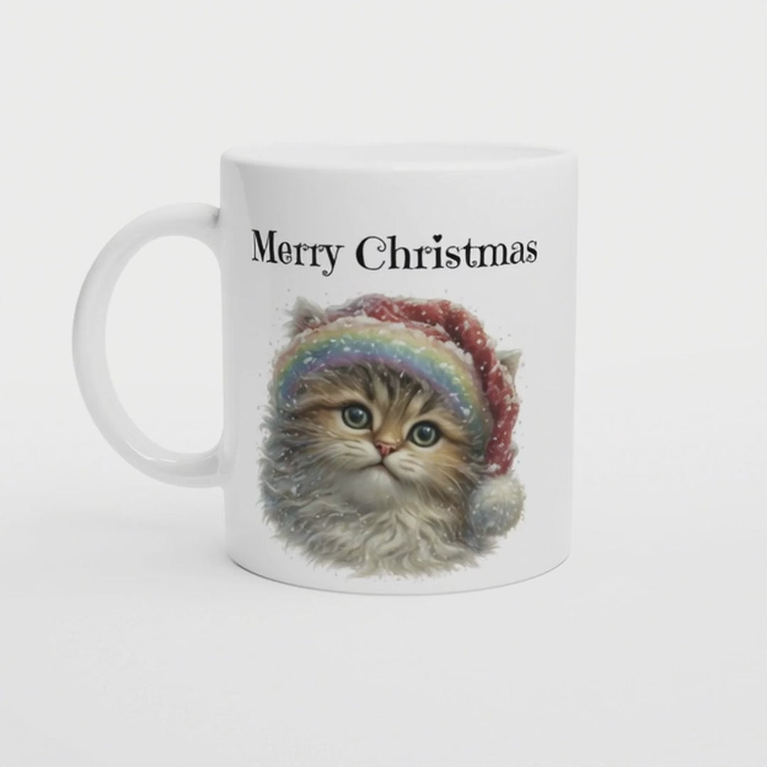 Süße Keramik Katze Tasse "Frohe Weihnachten" Wichtelgeschenk, Geschenk beste Freundin, Animal, Christmas