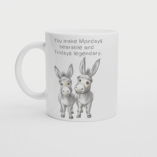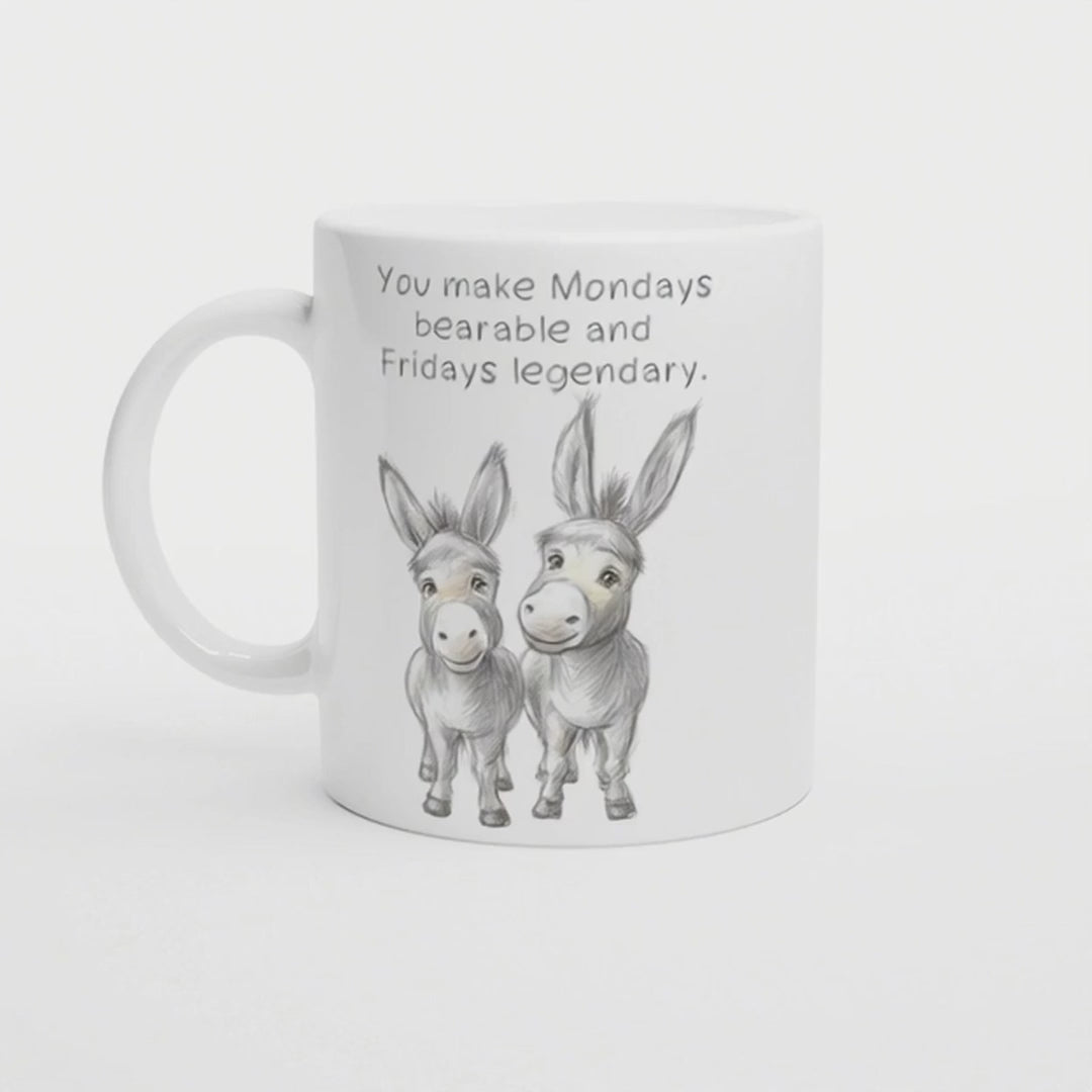 You make Mondays bearable and Fridays legendary | Lustige Esel Tasse | Geschenkidee für Kollegen oder Freund | Thanksgiving