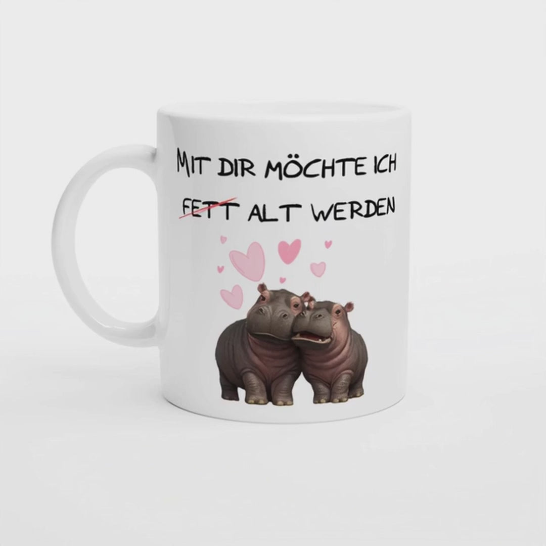 Mit dir möchte ich fett alt werden – Lustige Liebestasse für Paare! Valentinstag, Beziehungsgeschenk