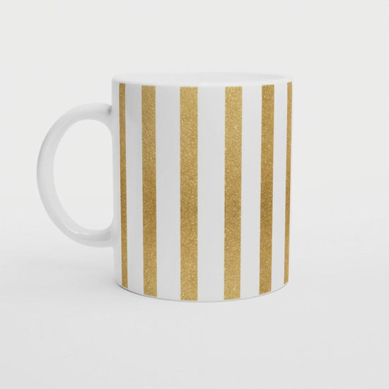 Diese Tasse ist pure Feierlaune! Die goldenen Glitzer-Streifen sehen aus wie flüssiges Gold und bringen jeden Morgen zum Strahlen. Das perfekte Geschenk für die Freundin, die das Leben feiert und einen Hauch Glamour liebt.