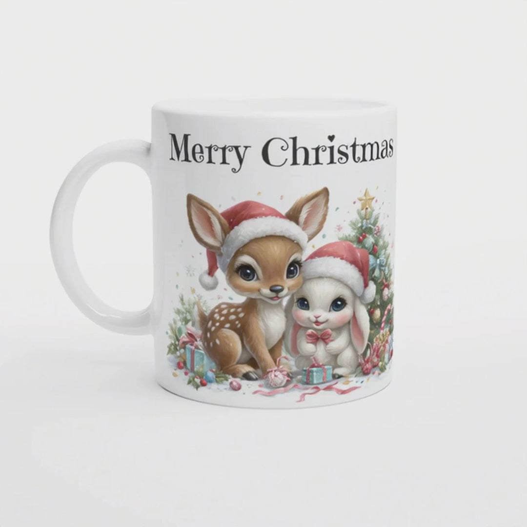 Okay, stopp. Viel süßer wird Weihnachten nicht. Dieses Duo aus Reh und Hase mit Weihnachtsmützen ist so zuckersüß, dass dein Glühwein dagegen bitter schmeckt. Das ist die offizielle Tasse für alle, die Weihnachten und flauschige Tiere lieben.