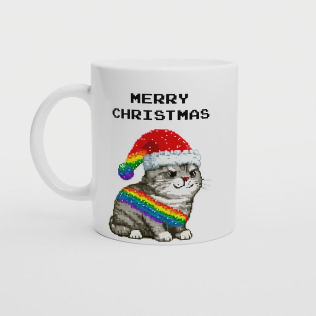 Weihnachtstasse inspiriert von Nyan Cat; Wichtelgeschenk, Pixel Katze, Meme Tasse, Geschenk Kollege, Christmas, Anime & cartoon
