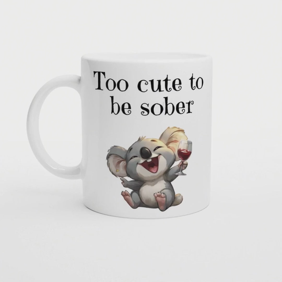 Too cute to be sober | Lustige Koala Tasse | Geschenkidee für Freundin oder Kollegen | Witzige Weihnachts-Tasse mit Humor, Keramik Weiß