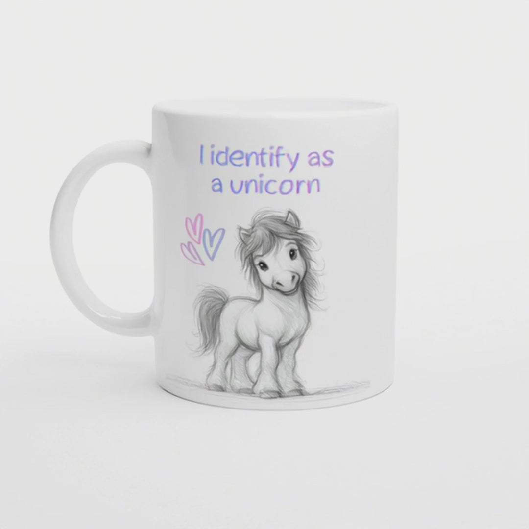 I identify as a unicorn – Lustige Tasse mit Spruch für Büro oder Freundin – Witzige Pferde Tasse als Geschenkidee mit Humor