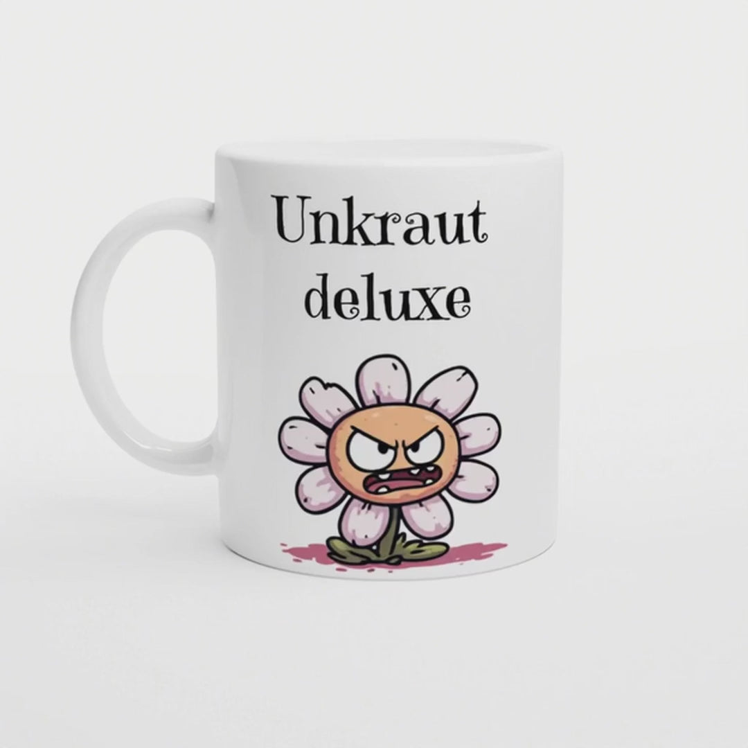 Unkraut Deluxe | Lustige Tasse grantige Blume, Cartoon | Geschenkidee für Freundin oder Kollegin | Humorvolles Weihnachts-Wichtelgeschenk