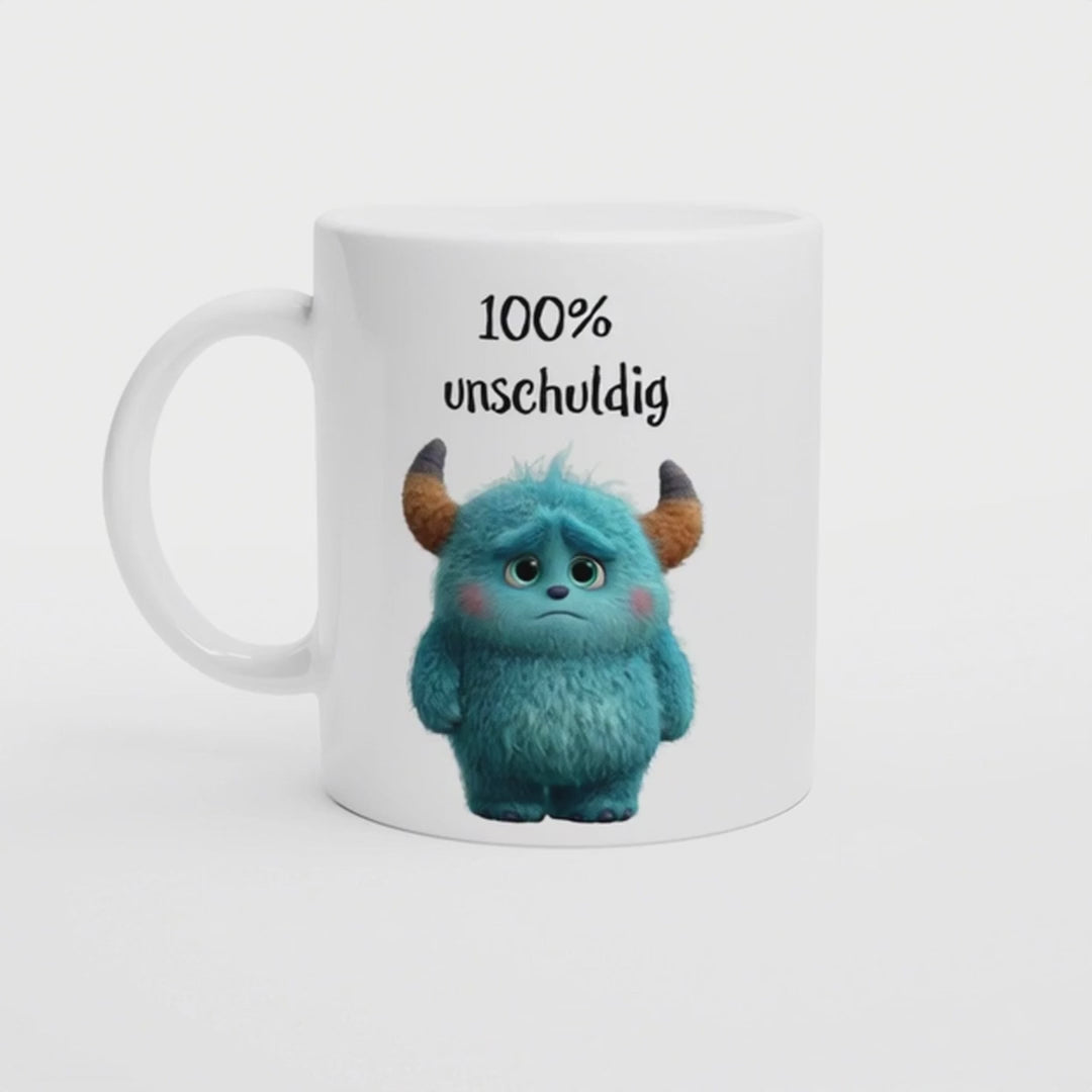 100% unschuldig | Lustige Monster Tasse | Geschenkidee für Freundin, Kollegen oder Kinder | Witzige Weihnachts-Tasse mit Humor
